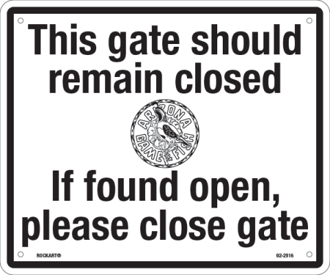 12 x 10 x .070 Polyflex Sign - "This Gate Should Remain Closed, If Found Open, Please Close Gate" (DOUBLE-SIDED), w/ AZ Game & Fish Logo, Wht/Blk, Non-REF