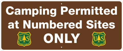 48 x 20 x .125 Alum. Sign - "Camping Permitted At Numbered Sites ONLY", w/ Full Color 6" USFS Logo, Wht/Brn, HIP