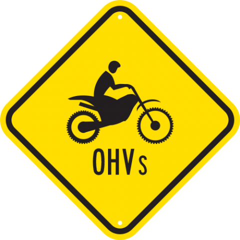 92-2555-88 x 8 x .080 Alum. Sign - "OHV's", W/ Motorbike Symbol, Full Color (Yel/Blk), EG