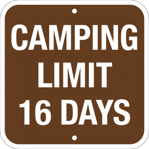 Alum. Sign - "Camping Limit 16 Days", Wht/Brn, EG