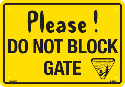 92-265410 x 7 x .032 Alum. Sign - "Please! Do Not Block Gate", w/ BLM Logo, Yel/Blk, Non-REF