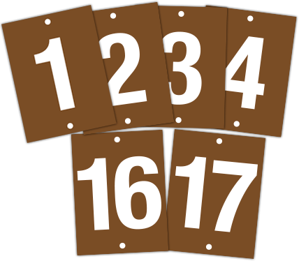 3 x 4 x .063 Alum. Sign - "Numbers 1...17", Wht/Brn, EG