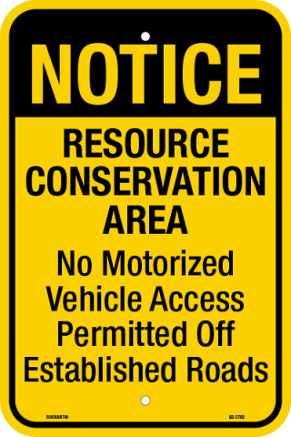 12 x 18 x .080 Alum. Sign - "Notice Resource Conservation Area / No Motorized Vehicle Access Permitted Off Established Roads", Yel/Blk, EG