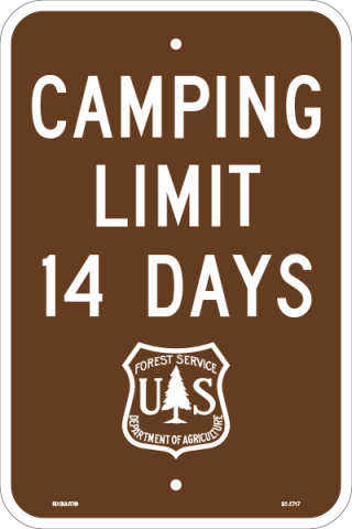 12 x 18 x .050 Polyflex Sign - "Camping Limit 14 Days", w/ USFS Logo, Wht/Brn, Non-REF