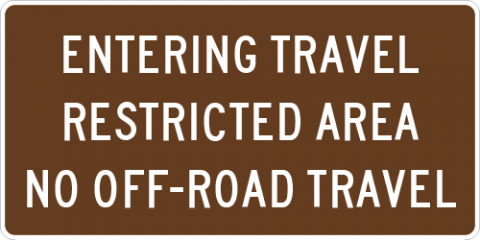 48 x 24 x .125 Alum. Sign - "Entering Travel Restricted Area / No Off-Road Travel", Wht/Brn, HIP