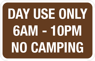 92-282828 x 18 x .125 Alum Sign - "Day Use Only / 6AM - 10PM / No Camping", Wht/Brn, HIP