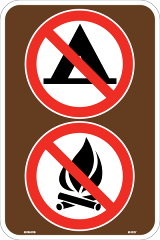 92-283712 x 18 x .080 Alum Sign - "No Camping / No Campfire Symbols", Wht/Brn/Red/Blk, HIP