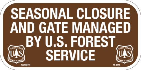 92-2845 12 x 6 x .080 Alum Sign - "Seasonal Closure And Gate Managed By U.S. Forest Service", W/ USFS Logo, Wht/Brn, HIP