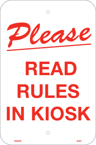 92-285112 x 18 x .080 Alum Sign - "Please Read Rules In Kiosk", Wht/Red, EG