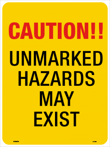 92-2958 18 x 24 Corrugated Sign - "Caution!! Unmarked Hazards May Exist", Full Color, EG