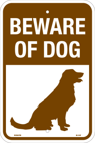 92-319712 x 18 x .080 Alum Sign - "Beware Of Dog" w/ Sitting Dog Graphic, Wht/Brn, EG