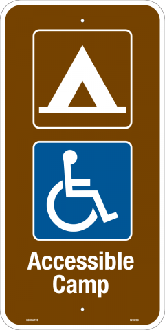 12 x 24 x .080 Alum. Sign - "Accessible Camp", w/ Campsite Symbol, Handicap Symbol, Wht/Brn/Blu, EG