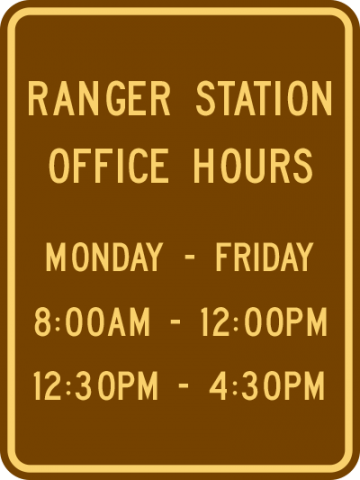 18 x 24 x .75 HDPE Sign - "Ranger Station Office Hours, Monday - Friday, 8A-12P, 12:30P-4:30P", Brn/Yel-Crm/Brn, No Holes